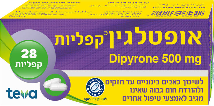 אופטלגין קפליות לשיכוך כאבים בינוניים עד חזקים ולהורדת חום גבוה שאינו מגיב לאמצעי טיפול אחרים