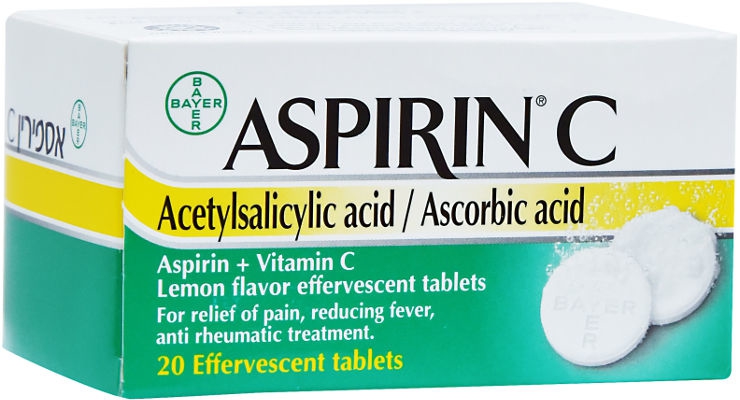 התוויה: אספירין + ויטמין C טבליות תוססות בטעם לימון להקלה על כאבים, להורדת חום, לטיפול אנטי ראומטי