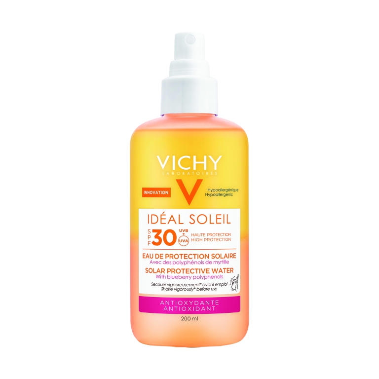 וישי ספריי מים סולאריים להגנה מהשמש SPF30. עם פוליפנולים מפרי האוכמניות