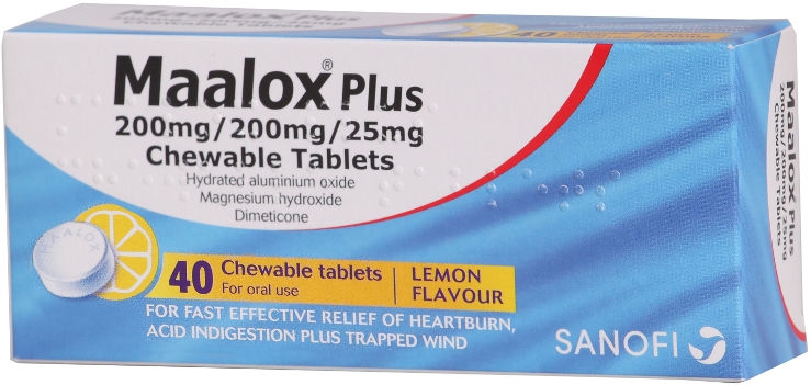 מאלוקס פלוס טבליות נגד צרבת וגזים. פעילות רפואית: סותר חומצה וסופח גזים במקרים של כיב קיבה או תריסריון, דלקת קיבה, צרבת ועודף חומצה בקיבה. מינון והוראות שימוש: ללעוס 2-4 טבליות, 20 דקות עד שעה לאחר הארוחות וכן לפני השינה. יש לעיין בעלון לצרכן