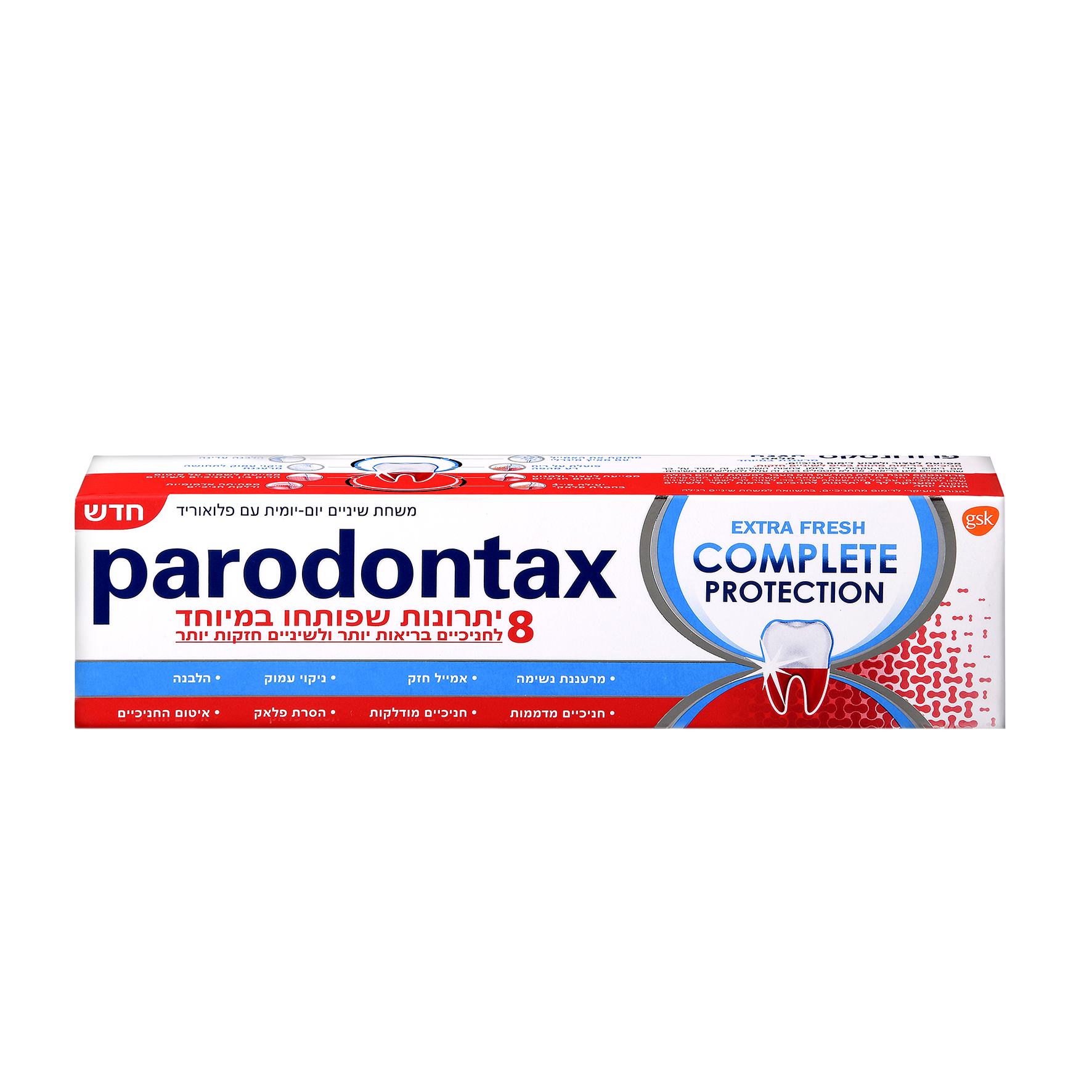 פרודונטקס משחת שיניים הגנה מלאה מרעננת במיוחד מסייעת לעצור ולמנוע דימום חניכיים. מעניקה לך 8 יתרונות לחניכיים בריאות יותר ולשיניים חזקות יותר: מחזקת את האמייל עם מאיץ מינרלי. פועלת על ריח רע מהפה. מסייעת לעצור ולמנוע דימום חניכיים. יעילה פי-4 בהסרת פלאק*. הלבנה עדינה. ניקוי עמוק לתחושה מרעננת. מסייעת לשמור על איטום הדוק בין החניכיים לשיניים. מפחיתה אדמומיות ודלקת חניכיים.