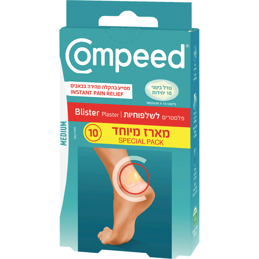 קומפיד פלסטרים לשלפוחיות, גודל בינוני, מארז מיוחד.מסייע בהקלה מיידית בכאביםריפוי מהיר, מונע שפשוףנצמד היטב ולאורך זמן