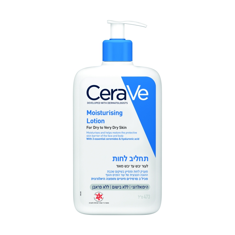 תחליב לחות לעור יבש עד יבש מאוד מעניק לחות ומסייע בשיקום שכבת ההגנה הטבעית של עור הפנים והגוף מכיל 3 סרמידים חיוניים וחומצה היאלורונית מתאים למבוגרים וילדים ללא בישום. ללא פראבן. | היפואלרגני